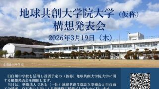 地球共創大学院大学(仮称)構想発表会 期日 令和8年3月19日(木) 14時~16時(開場 13時30分) 内容 第一部 連携協定締結式 14時~ 出席:一般社団法人地球共創学園設立準備会 […]