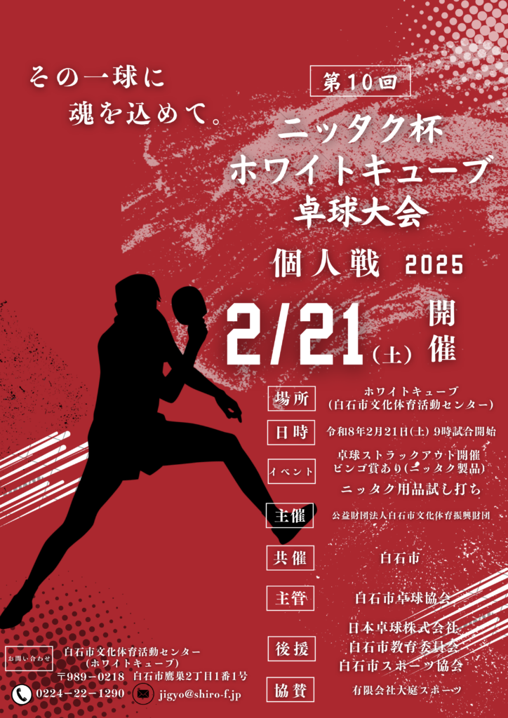 【お知らせ】第10回ニッタク杯ホワイトキューブ卓球大会(個人戦)の開催について