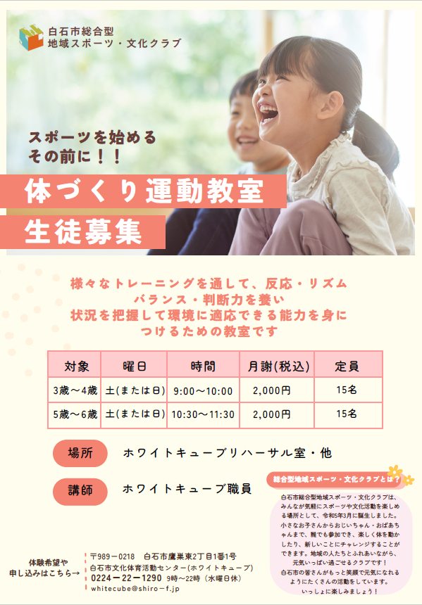 当教室では、様々な運動を通して、「反応・リズム・バランス・判断力」を育て